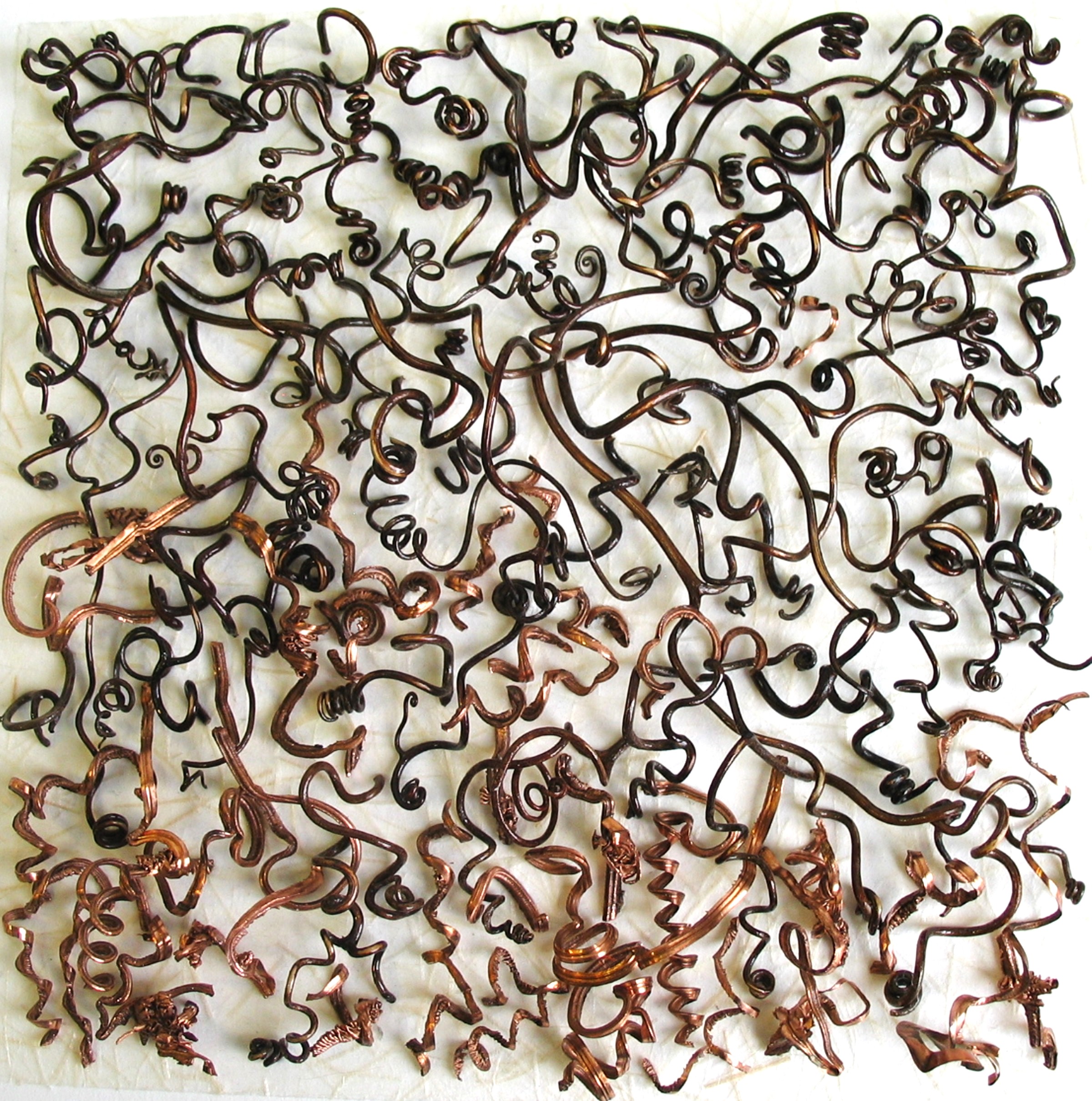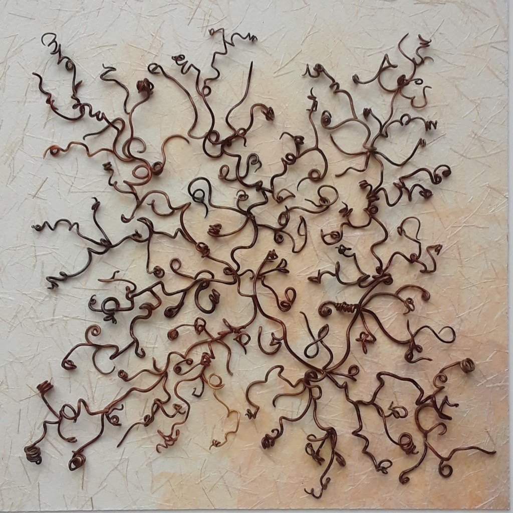 10” x 10” Vine tendrils, shellac, copper on ginwashi paper